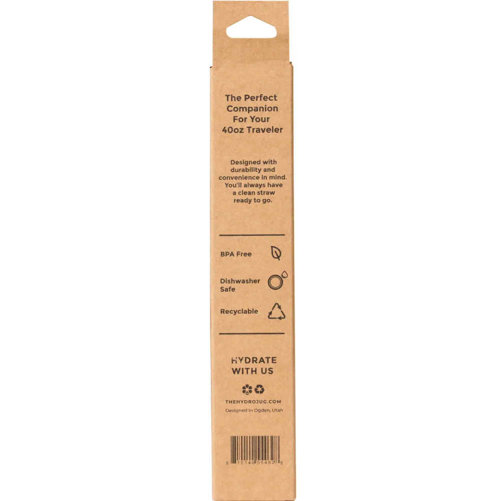 The perfect companion for your HydroJug 40oz Traveler! This set of 4 durable and reusable straws is designed to ensure you always have a fresh, clean straw ready to go. With BPA-free materials, these straws are safe to use, dishwasher-friendly for easy cleaning, and fully recyclable for eco-conscious hydration.