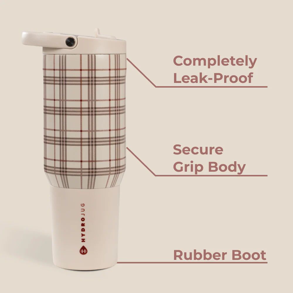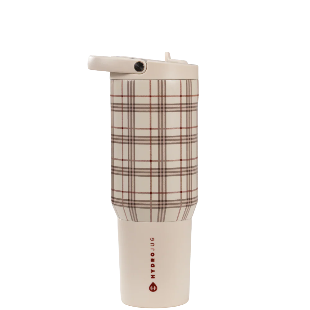 The HydroJug Sport 20oz in Blair delivers everyday hydration in a compact, functional design. Its cream base with a subtle plaid pattern makes it versatile enough for work, workouts, or weekends.