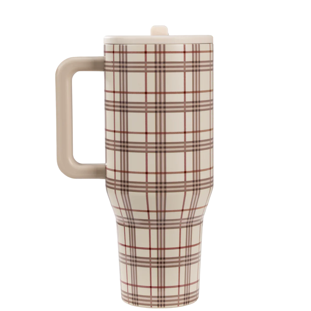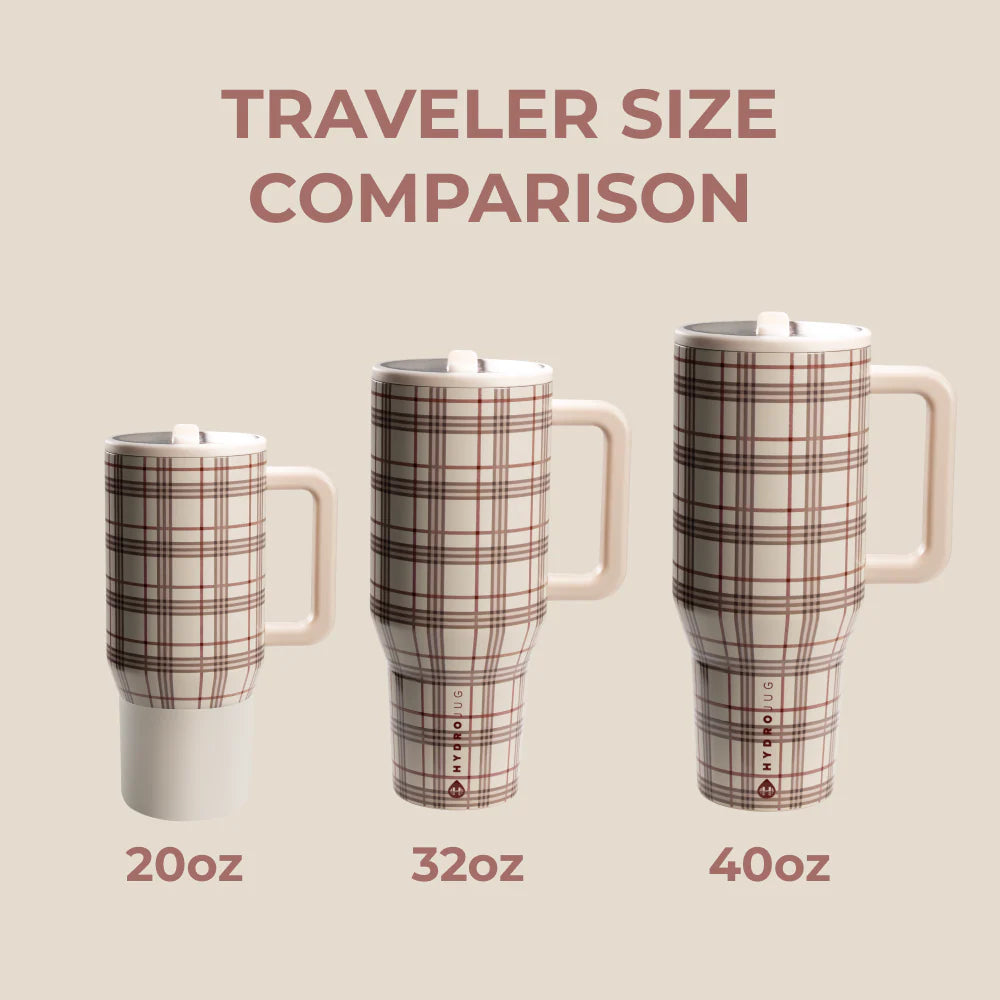 The HydroJug Traveler 32oz in Blair brings classic plaid style to everyday hydration. With a cream base and brown plaid pattern, this mid-size tumbler combines classic style with everyday performance – perfect for commutes, office days, or quick workouts.