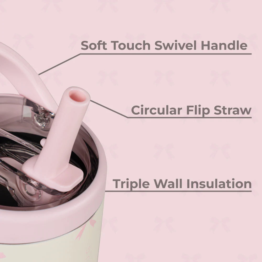 Made from 18/8 stainless steel with triple-wall insulation, it keeps drinks cold for hours, while the dishwasher-safe build makes cleanup simple. Tough enough for daily use and fun enough to carry anywhere, Bows insulated bottle is hydration made practical for busy parents and active kids.