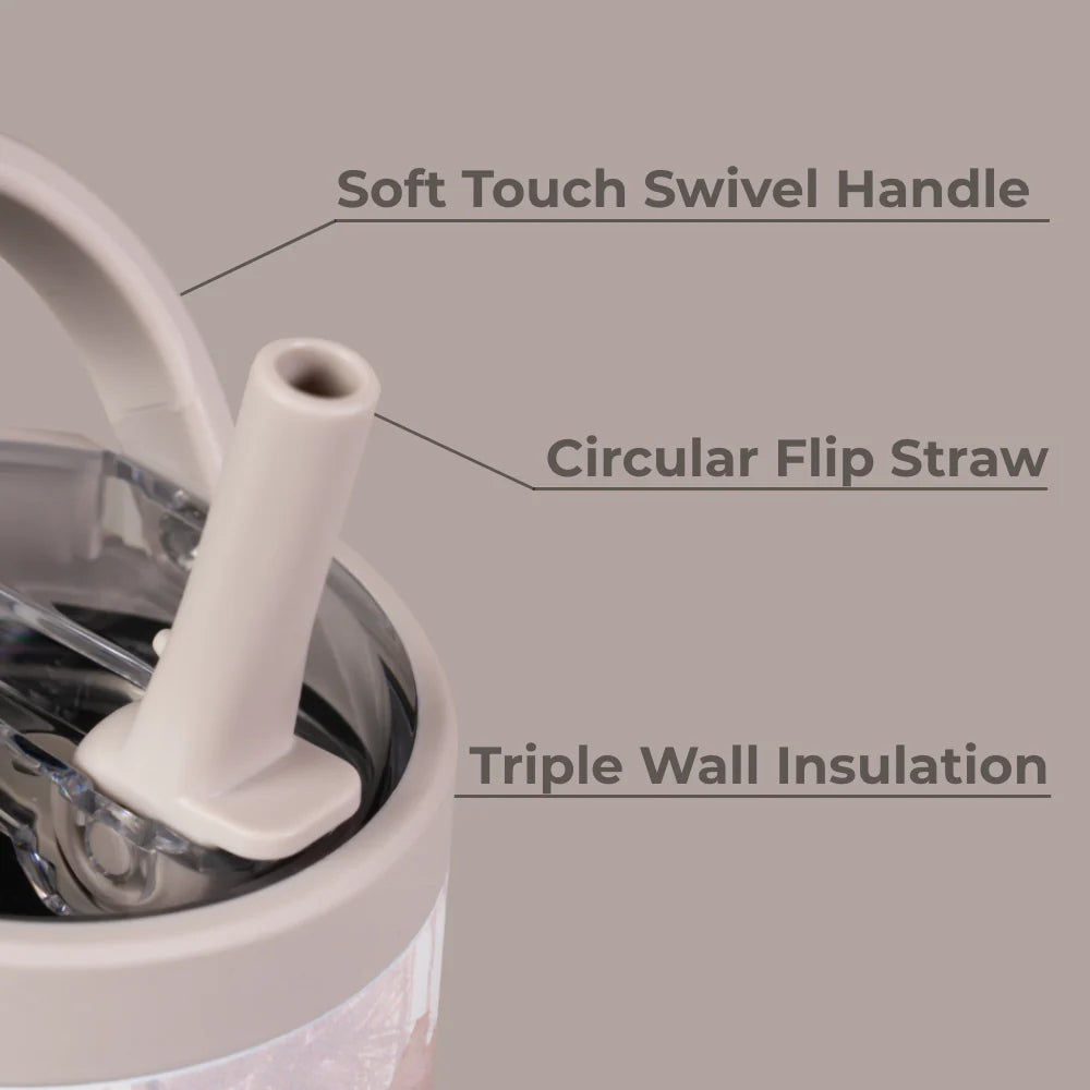 Despite its smaller build, it includes all the performance features of larger Sport bottles: completely leakproof with the straw down, fitted with a circular flip straw for smooth sipping, and equipped with an ergonomic bucket handle for comfortable transport. A protective rubber base reduces noise, adds durability, and helps protect surfaces.