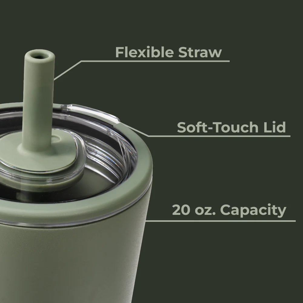 The 20oz Everyday Tumbler is made for those who like a little more in every pour. It keeps your drinks at temperature for hours thanks to its double-wall vacuum insulation. Featuring a soft-touch lid, flexible straw for easy sipping, and a rubber base that grips without a sound, this tumbler is your elevated everyday essential. Crafted for comfort and convenience, it’s the perfect companion for your daily coffee, matcha, smoothie, or whatever fuels your day.