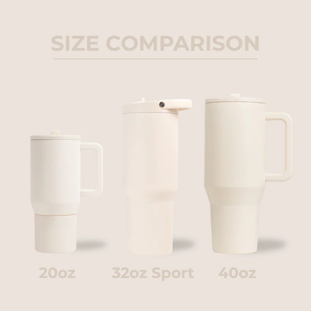 The 32oz size delivers the perfect balance – large enough to reduce refills through busy days, yet light and portable for on-the-go hydration. Made from 18/8 stainless steel with triple-wall insulation, the Cream tumbler keeps drinks cold for hours, and its dishwasher-safe design makes cleanup simple.