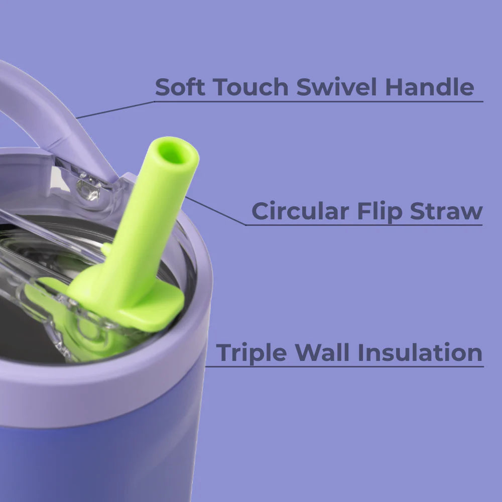 Built for movement and performance, it’s completely leakproof with the straw down, fitted with a circular flip straw for smooth sipping, and shaped with a cupholder-friendly tapered base. Ergonomic side grips provide a secure hold, while the bucket handle and protective rubber base add convenience and durability wherever you take it.