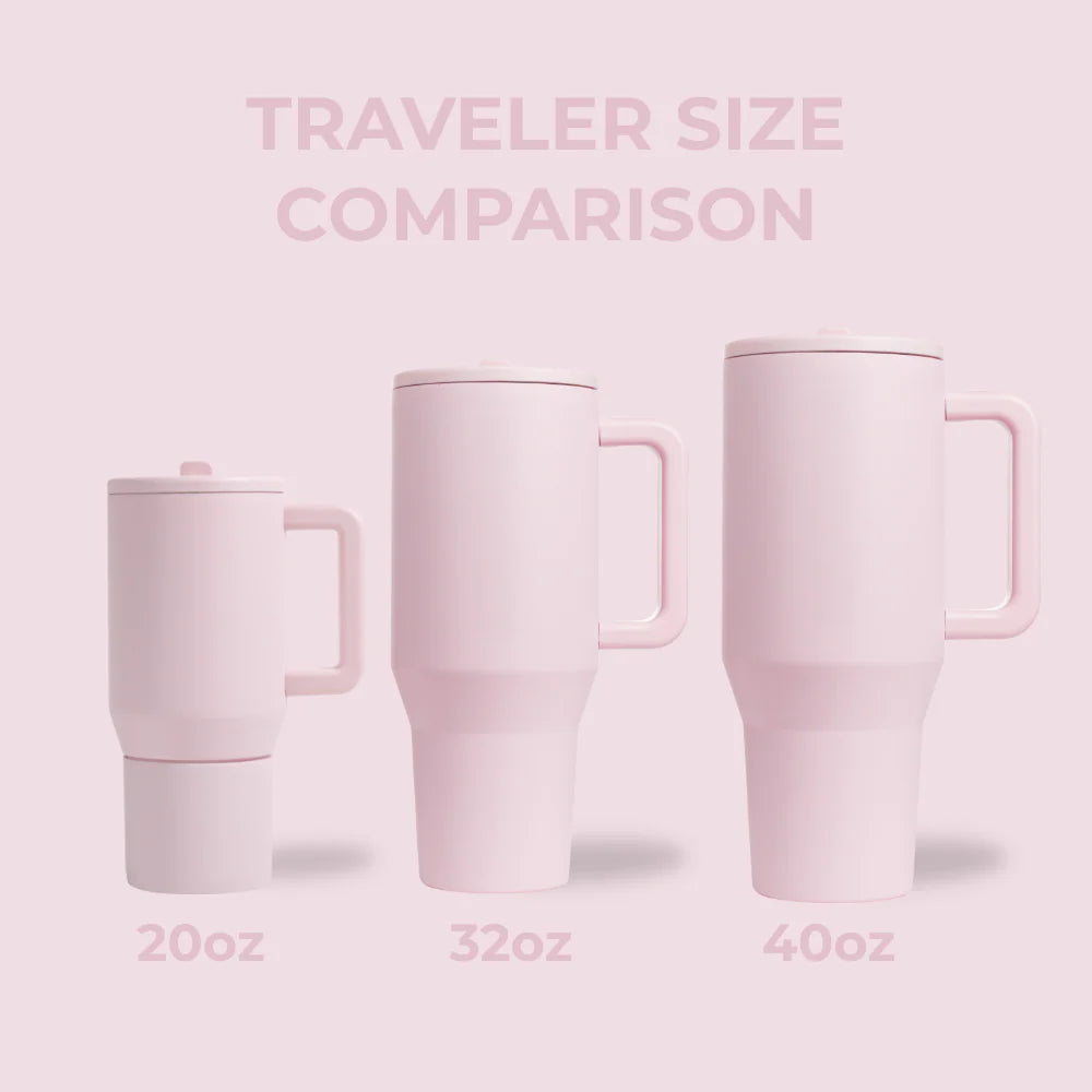 The 20oz capacity is the most portable size in the Traveler collection – lightweight enough for backpacks and cup holders yet dependable for steady hydration throughout the day. Built from durable stainless steel with triple-wall insulation, the Pink Sand tumbler keeps drinks cold for hours, and its dishwasher-safe design ensures quick and easy cleaning.