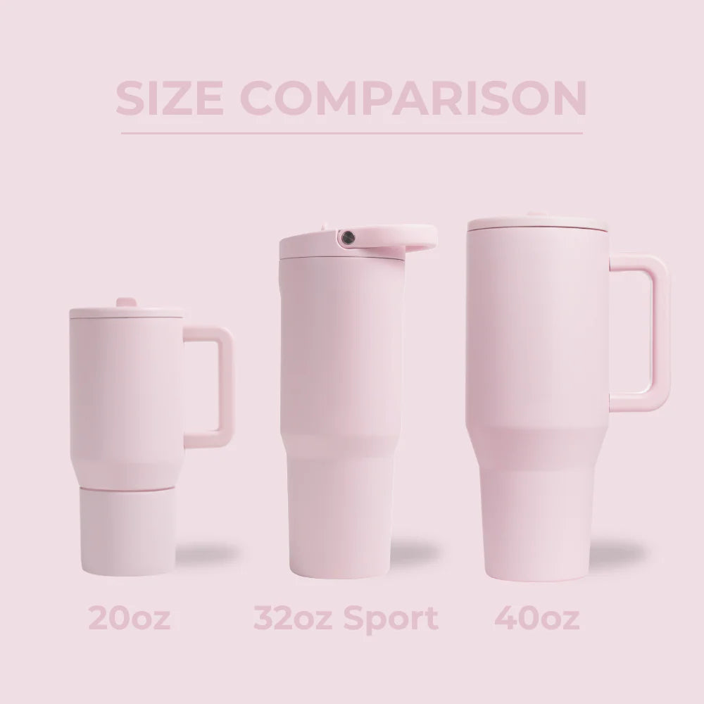 The 32oz size tumbler provides the perfect middle ground – large enough to keep hydration steady through busy days, yet lightweight and portable for grab-and-go use. Made from 18/8 stainless steel with triple-wall insulation, the Pink Sand water bottle keeps drinks cold for hours, and its dishwasher-safe design makes cleanup simple.