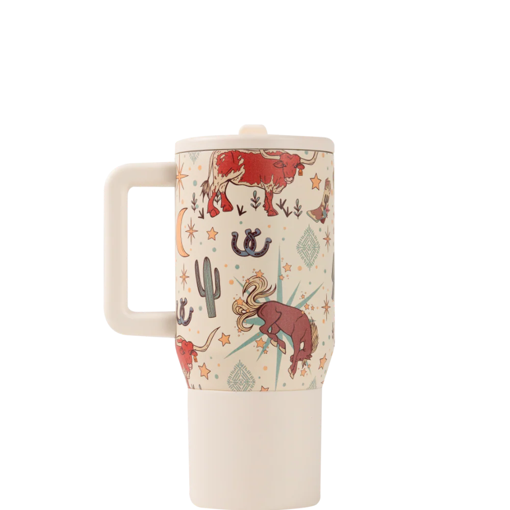 The 20oz capacity is the most portable option in the Traveler collection – small enough for backpacks, lunch bags, and cup holders, yet dependable enough for everyday hydration. Built from durable stainless steel with triple-wall insulation, the Rodeo tumbler keeps drinks cold for hours, and its dishwasher-safe construction makes cleanup easy.