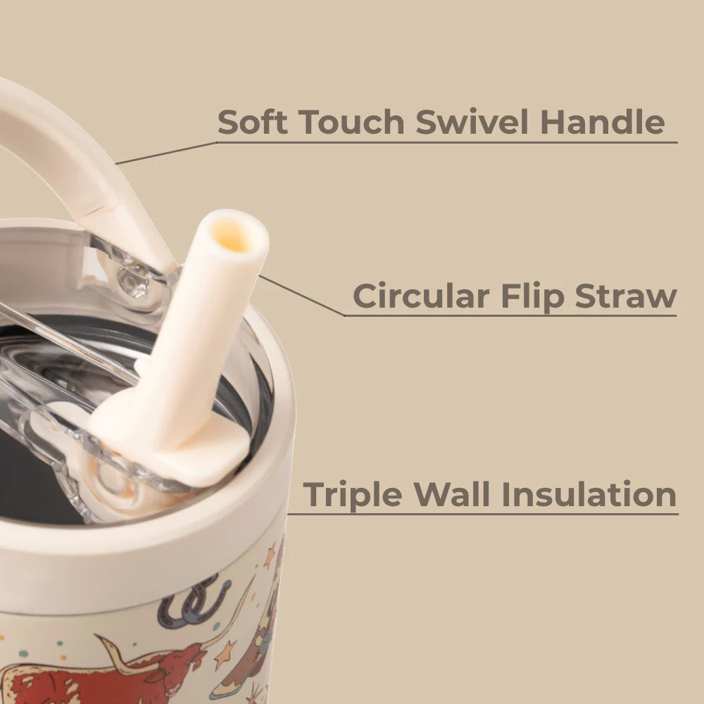 The 32oz size provides the ideal balance – large enough to limit refills during busy days, yet light and portable for everyday use. Built from 18/8 stainless steel with triple-wall insulation, the Rodeo tumbler keeps drinks cold for hours, and its dishwasher-safe design makes cleanup simple.