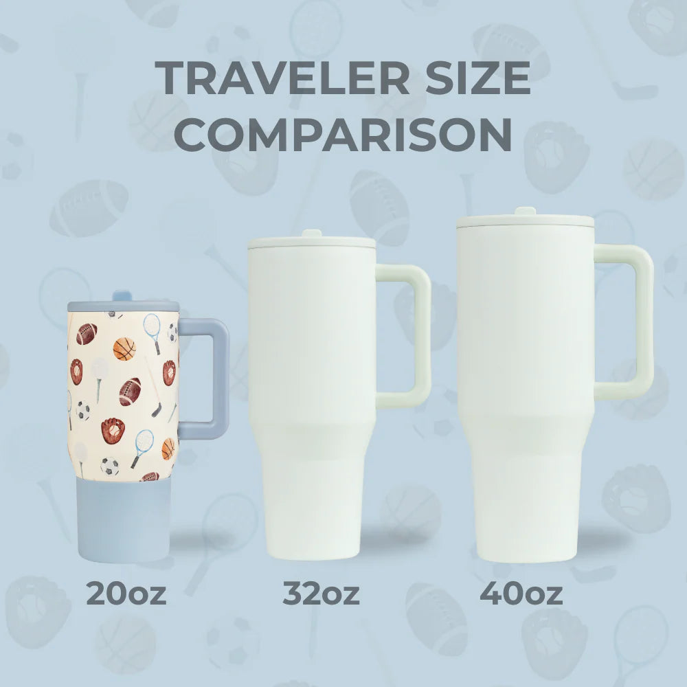 Keep kids hydrated with the HydroJug Traveler 20oz in Sports. With its cream base decorated with basketballs, soccer balls, footballs, and more, this compact water bottle adds a fun athletic theme while supporting steady hydration at school, practice, or weekend play.