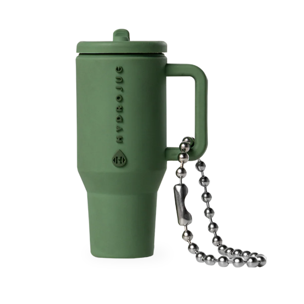 A miniature keychain designed to mimic the iconic HydroJug Traveler. Crafted from durable silicone and featuring a secure metal chain, it's the perfect accessory for your HydroJug bottle, bag, or key ring. Stay hydrated in style wherever you go with this compact and fashionable accessory.
